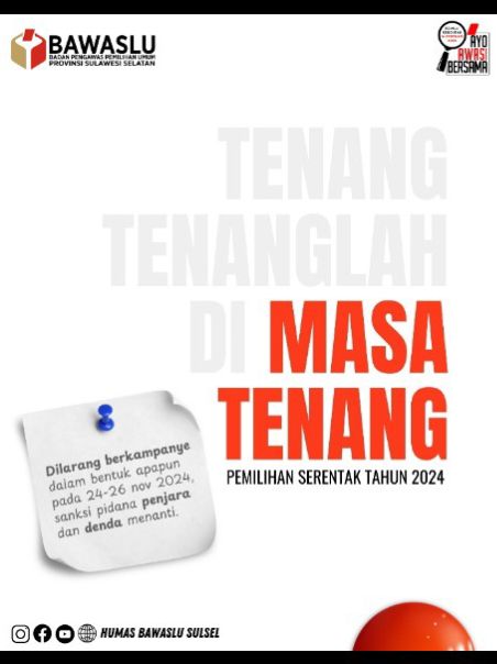 Di masa tenang ini, segala bentuk kampanye, baik melalui media sosial, spanduk, maupun kegiatan tatap muka, dilarang keras. Badan Pengawas Pemilu (Bawaslu) Kabupaten Wajo memastikan pengawasan ketat untuk mencegah pelanggaran aturan. “Kami mengimbau semua pihak untuk mematuhi aturan demi menjaga keadilan dan integritas pemilu,” kata Ketua Bawaslu Wajo, Andi Hasnadi.