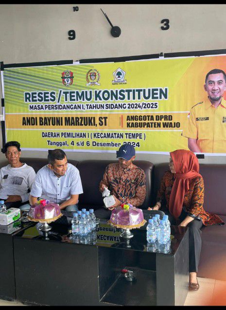 Wajo – Ketua Komisi III DPRD Kabupaten Wajo, Andi Bayuni Marzuki, dari Partai Golkar, menggelar reses di Jalan Sawerigading, Sengkang, pada Kamis (5/12/2024). Kegiatan yang berlangsung siang hari ini dihadiri ratusan masyarakat yang antusias menyampaikan berbagai aspirasi dan kebutuhan di wilayah mereka.
