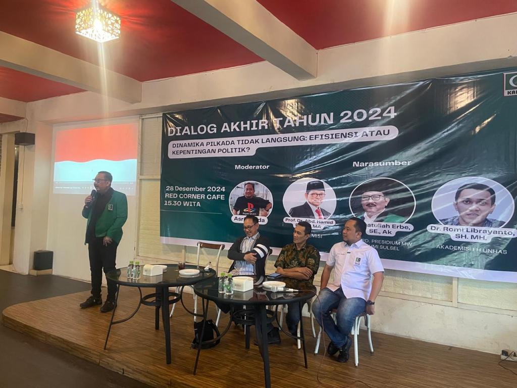 Koordinator Presidium KAHMI Sulsel, Ni’matullah, menyampaikan hal ini dalam dialog akhir tahun bertema Dinamika Pilkada Tidak Langsung: Efisiensi atau Kepentingan Politik di Makassar, Sabtu (28/12).