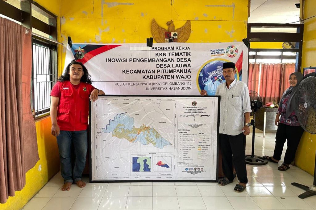 WAJO-Celoteh.online- Para mahasiwa Kuliah Kerja Nyata Tematik (KKN-T) Gelombang 113 Universitas Hasanuddin resmi menyerahkan Peta Administrasi dan Tutupan Lahan terbaru Desa Lauwa, Kecamatan Pitumpanua, Kabupaten Wajo, Sulawesi Selatan kepada Pemerintah Desa Lauwa.