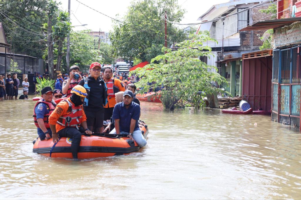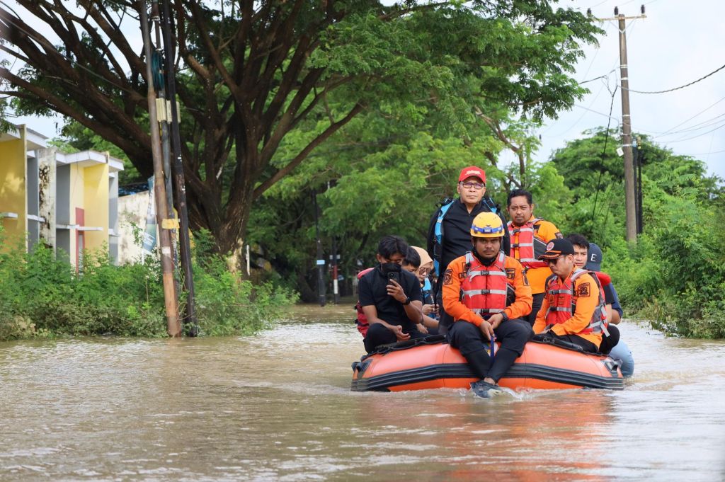 Wali Kota Makassar, Moh. Ramdhan Pomanto, turun langsung meninjau lokasi banjir dengan menggunakan perahu karet. Ia memastikan warga yang mengungsi mendapatkan bantuan yang cukup dan dalam kondisi aman.
