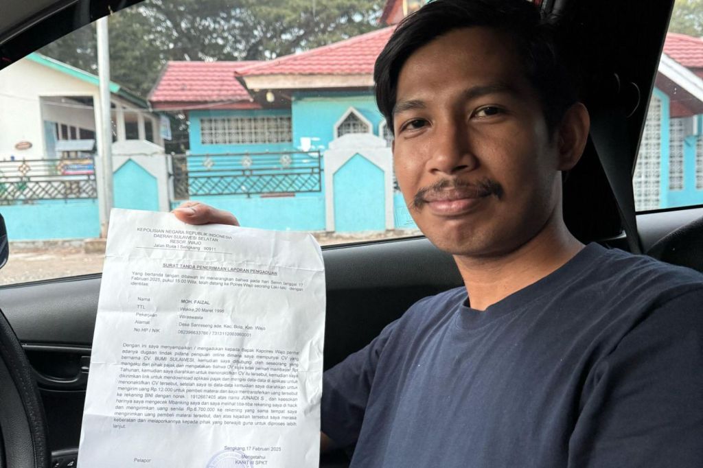 Wajo – Celoteh.Online – Aliansi Mahasiswa Indonesia – Wajo Bersatu (AMI-WB) secara resmi melaporkan kasus penipuan online yang mengatasnamakan Direktorat Jenderal Pajak (DJP) serta dugaan kebocoran data wajib pajak ke Polres Wajo. Laporan tersebut diajukan oleh juru bicara AMI-WB, Muhammad Faisal (Bang Ical), pada Senin (17/02) dan diterima langsung oleh Ipda Ervin Tajuddin Susanto, S.H.