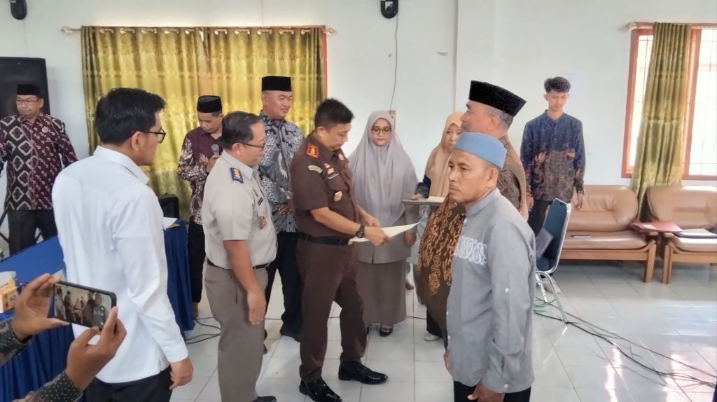 “Kita pastikan betul yang kita urus ini tidak ada masalah,” tegasnya. Sebagai bagian dari acara, dilakukan pula penandatanganan sertifikat tanah wakaf dan penyerahan sertifikat kepada para nazir.