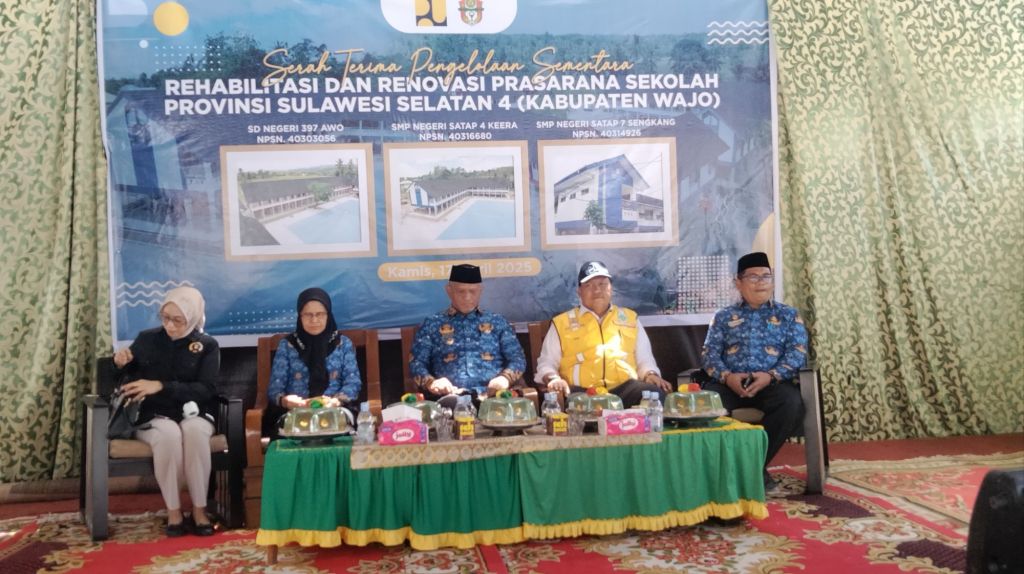 Wajo –Celoteh.Online– Pemerintah Kabupaten Wajo secara resmi menerima pengelolaan sementara tiga sekolah yang telah direhabilitasi dan direnovasi oleh Balai Prasarana Permukiman Wilayah (BPPW) Sulawesi Selatan. Serah terima ini berlangsung pada Kamis, 17 April 2025, di Desa Awo, Kecamatan Keera, Kabupaten Wajo.