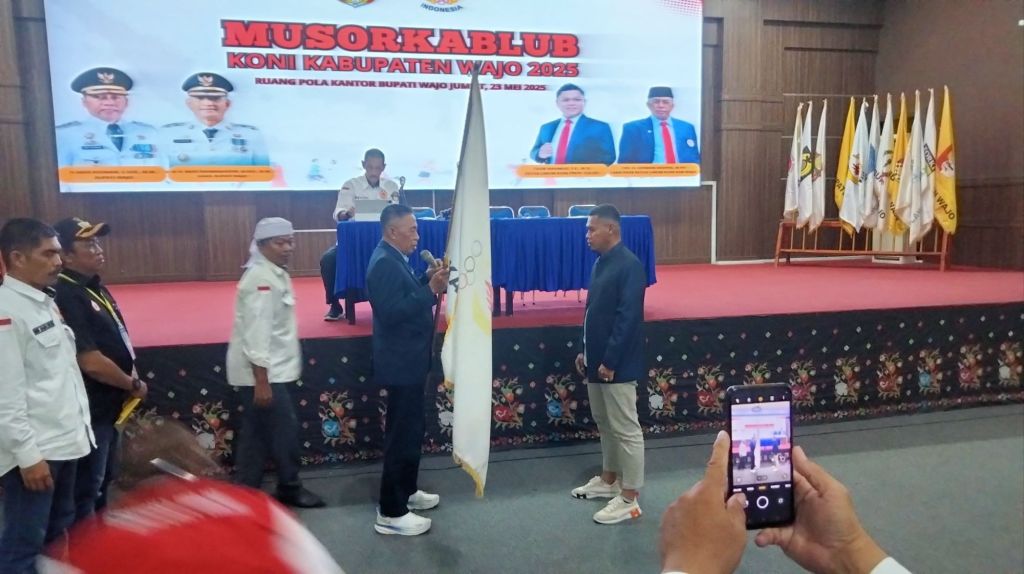 Wajo – Celoteh.Online– Musyawarah Olahraga Kabupaten Luar Biasa (Musorkablub) KONI Kabupaten Wajo yang digelar di Ruang Pola Kantor Bupati Wajo pada Jumat (23/5), menetapkan H. Hermansyah sebagai Ketua Umum KONI Kabupaten Wajo masa bakti 2025–2029. Ia terpilih secara aklamasi setelah mendapat dukungan penuh dari seluruh peserta musyawarah.