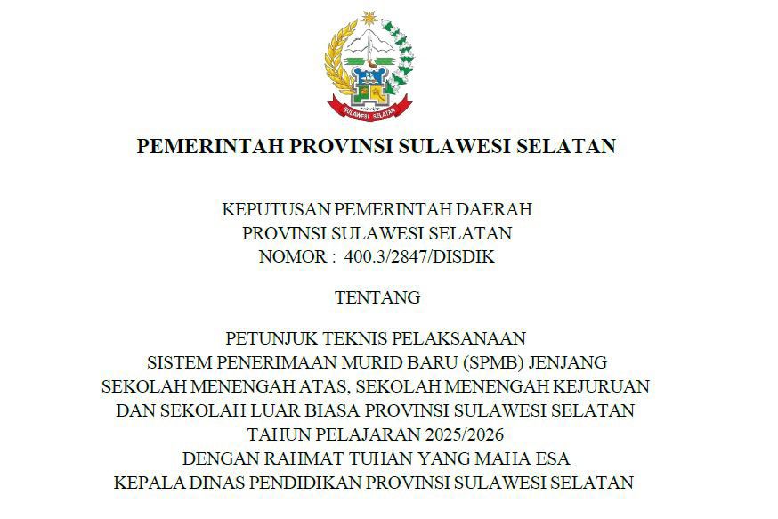 Inti polemik bermula dari terbitnya Keputusan Pemerintah Daerah Provinsi Sulawesi Selatan Nomor 400.3/2847/DISDIK tentang pelaksanaan SPMB yang secara mencolok menyebut bahwa penetap adalah Kepala Dinas Pendidikan, namun ditandatangani oleh Sekretaris Daerah atas nama Gubernur Sulawesi Selatan. Hal ini secara jelas bertentangan dengan prinsip legalitas dalam Permendagri Nomor 1 Tahun 2023 tentang Tata Naskah Dinas.