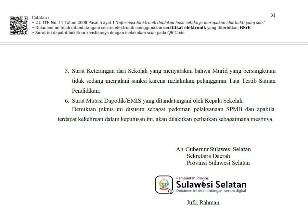 Inti polemik bermula dari terbitnya Keputusan Pemerintah Daerah Provinsi Sulawesi Selatan Nomor 400.3/2847/DISDIK tentang pelaksanaan SPMB yang secara mencolok menyebut bahwa penetap adalah Kepala Dinas Pendidikan, namun ditandatangani oleh Sekretaris Daerah atas nama Gubernur Sulawesi Selatan. Hal ini secara jelas bertentangan dengan prinsip legalitas dalam Permendagri Nomor 1 Tahun 2023 tentang Tata Naskah Dinas.