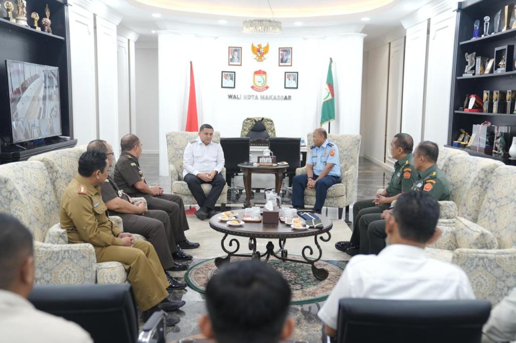 Wali Kota Makassar Munafri Arifuddin, didampingi Asisten II Bidang Perekonomian dan Pembangunan, Fathur Rahim, menyambut langsung Kepala Oditurat Militer Tinggi IV (Kaotmilti IV) Marsma TNI Wahyu Priyo Budi, S.H., M.H. bersama Asisten Pidana Militer Kejaksaan Tinggi Sulsel Kolonel Laut (H) Dr. M. Asri Arief, S.H., M.Si., CTMP.