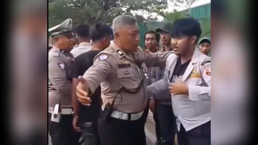 Namun, emosi pelaku semakin memuncak. Ia memukul petugas Dishub, lalu menarik kerah seragamnya di hadapan aparat kepolisian. Dalam rekaman, seorang anggota polisi tampak menunjuk pelaku agar menghentikan tindakannya.