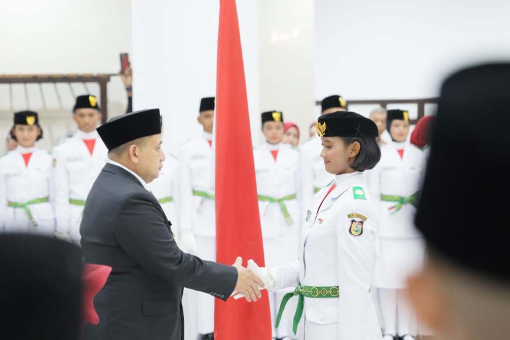 Momen khidmat itu disertai pembacaan ikrar, penyematan lencana dan kendit, serta penyerahan duplikat bendera pusaka dan teks proklamasi—sebuah amanah yang akan mereka bawa di puncak upacara 17 Agustus pada hari Minggu nanti.