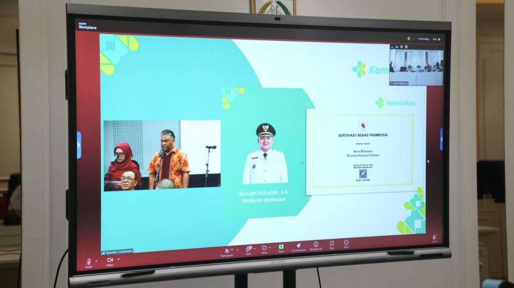 Makassar, Celoteh.Online – Pemerintah Kota Makassar menerima penghargaan dari Kementerian Kesehatan Republik Indonesia berupa Sertifikat Eliminasi Bebas Frambusia. Penyerahan dilakukan secara hybrid, Rabu (20/8/2025), Wali Kota Makassar mengikuti penyerahan secara virtual dari Balai Kota Makassar.