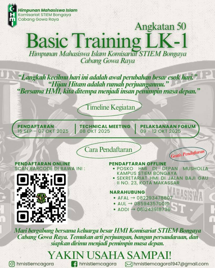 Dengan ini HMI Komisariat STIEM Bongaya Cabang Gowa Raya berharap pelaksanaan Basic Training kali ini dapat melahirkan kader yang tidak hanya kritis dan berdaya juang, tetapi juga memiliki tradisi membaca yang kuat.(*)