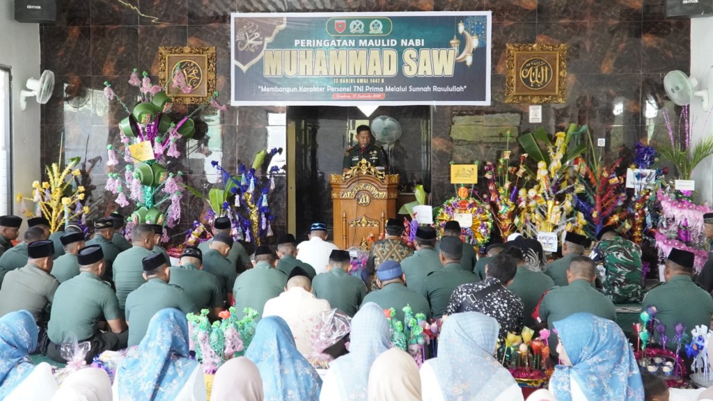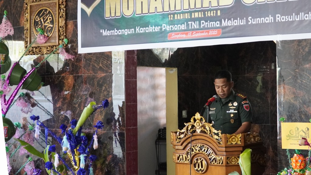 Dalam sambutannya, Letkol Inf Harianto menekankan pentingnya meneladani Rasulullah SAW sebagai suri teladan dalam kehidupan sehari-hari, termasuk dalam melaksanakan tugas dan pengabdian sebagai prajurit TNI.