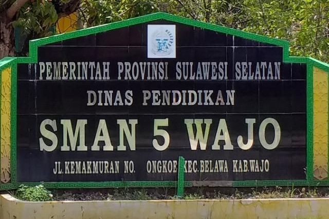 Sekolah Menengah Atas (SMA) Negeri 5 WAJO, merupakan jenjang pendidikan formal lanjutan dari Sekolah Menengah Pertama (SMP) yang bertujuan untuk memberikan pendidikan umum dan mempersiapkan siswa untuk jenjang pendidikan tinggi atau dunia kerja. SMAN 5 Wajo terletak di Jl. Kemakmuran Desa Ongko, Kecamatan Belawa, Kabupaten Wajo.