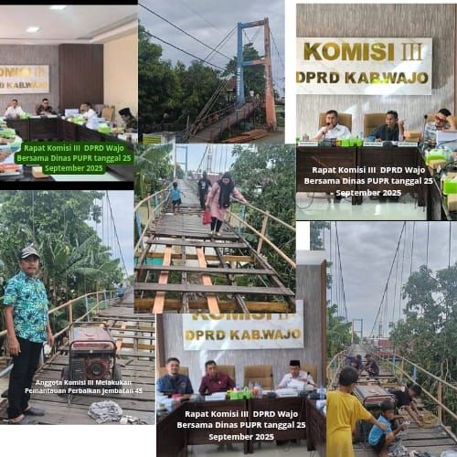 Wajo, Celoteh.Online – Komisi III DPRD Kabupaten Wajo mengapresiasi langkah cepat Pemerintah Kabupaten Wajo melalui Dinas Pekerjaan Umum dan Penataan Ruang (PUPR) yang telah menindaklanjuti aspirasi masyarakat terkait perbaikan Jembatan Gantung 45 di wilayah Kecamatan Tempe.