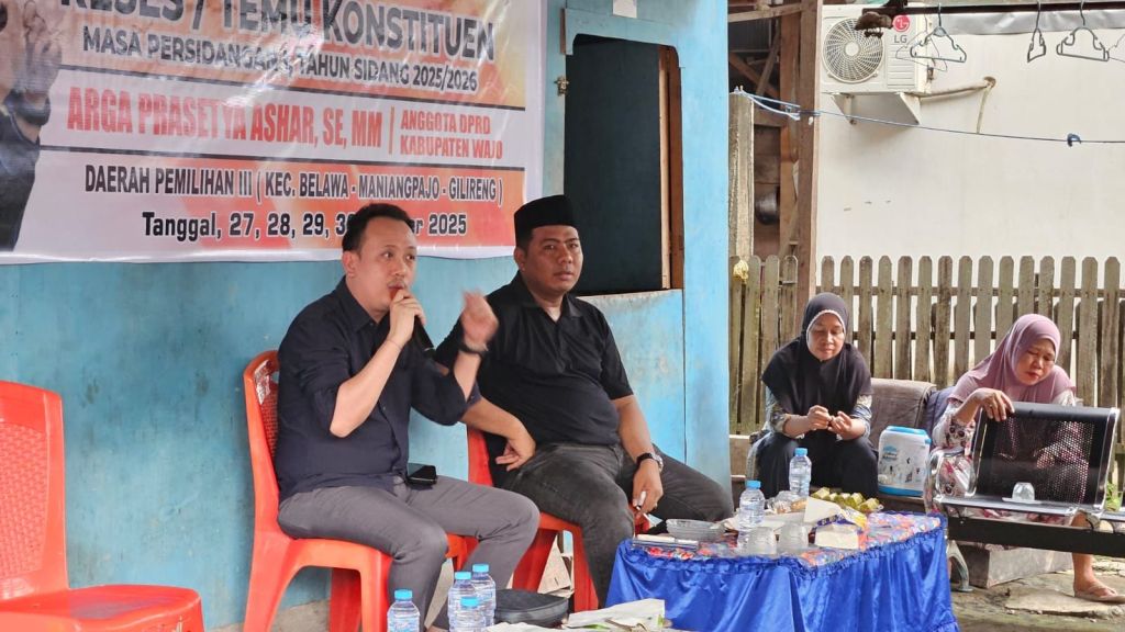 Wajo, Celoteh.Online – Anggota DPRD Kabupaten Wajo dari PKS, Arga Prasetya Ashar, kembali menyapa masyarakat di daerah pemilihannya lewat agenda reses di Desa Ongkoe, Kecamatan Belawa, Rabu (30/10/2025). Dalam pertemuan yang berlangsung hangat itu, Arga tak hanya membawa kabar gembira soal pembangunan infrastruktur di Kecamatan Belawa, tetapi juga harus mendengar langsung keluhan warga mengenai tanggul jebol, banjir, dan bantuan pertanian yang mandek.