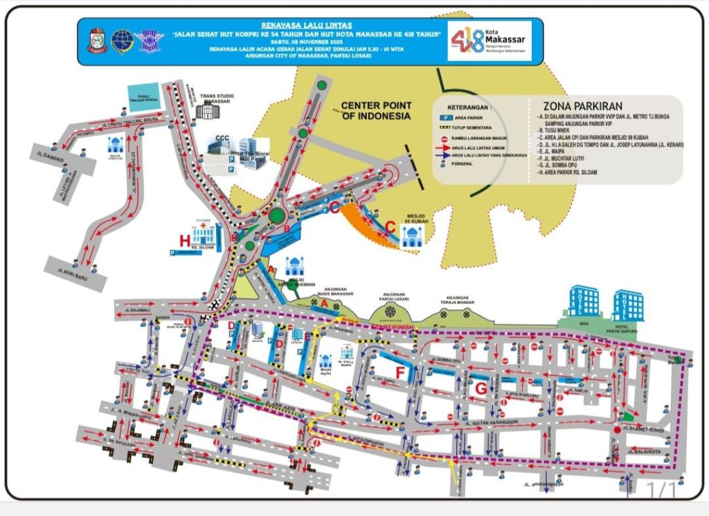 Dalam rangka memperingati Hari Ulang Tahun ke-54 Korps Pegawai Republik Indonesia (KORPRI) sekaligus memeriahkan Hari Jadi ke-418 Kota Makassar, Pemerintah Kota Makassar siap menggelar Jalan Santai massal pada Sabtu (8/11/2025), mulai pukul 06.00 WITA.