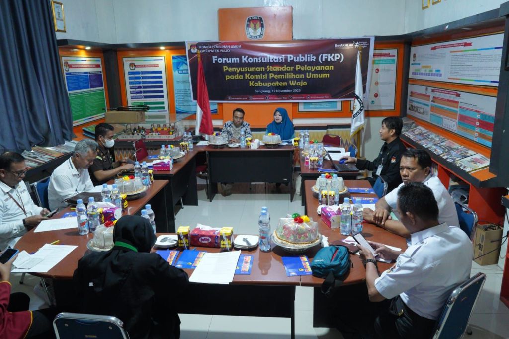 WAJO – Celoteh.Online – Komisi Pemilihan Umum (KPU) Kabupaten Wajo menggelar Forum Konsultasi Publik (FKP) tentang Rancangan Standar Pelayanan Layanan Pendidikan Kepemiluan, bertempat di Aula Kantor KPU Wajo, Rabu (12/11/2025) pukul 09.00 WITA.