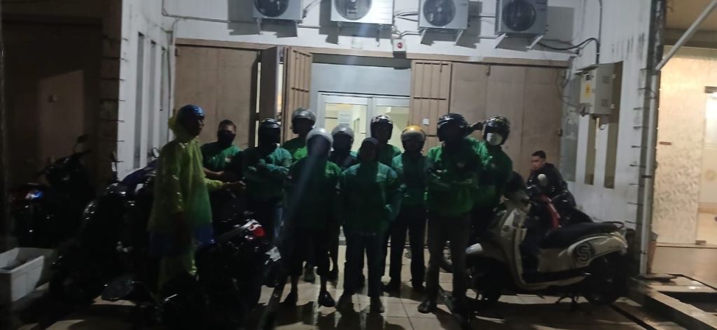 Aksi solidaritas dari para pengemudi ojek online malam itu berlangsung tertib dan damai. Mereka berdiri di depan kantor sambil membawa kendaraan masing-masing, menuntut agar perusahaan memberikan kebijakan bagi rekan mereka.