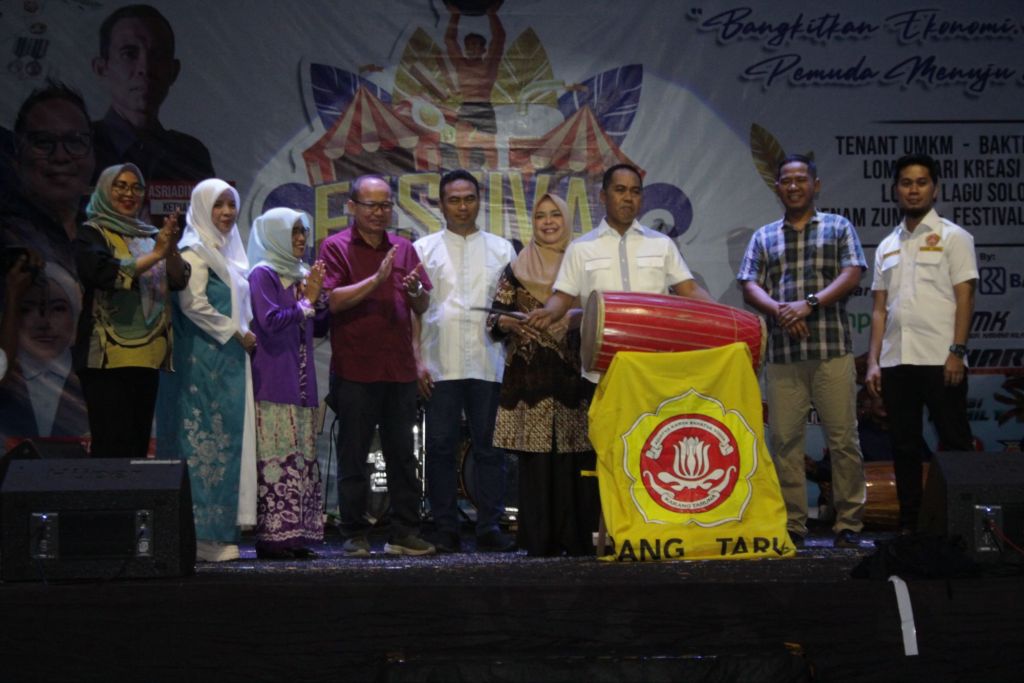 Festival UMKM 2025 resmi dibuka dengan pemukulan bedug, disusul sesi foto bersama jajaran Forkopimda Kabupaten Wajo.