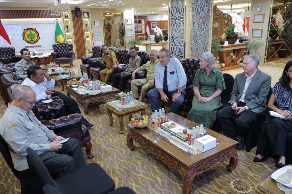 Pertemuan itu berlangsung dalam rangka membahas penguatan sektor pertanian di Kabupaten Wajo, termasuk program swasembada pangan, peningkatan infrastruktur pertanian, serta dukungan alat mesin pertanian (alsintan) bagi petani setempat.