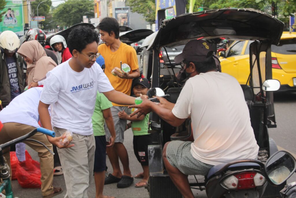 Kegiatan diawali dengan pembagian takjil kepada para pengguna jalan yang melintas di Jalan Jenderal Sudirman, tepat di depan Masjid Raya Sengkang. Dalam kegiatan tersebut, pengurus JMSI Wajo membagikan sekitar 150 paket takjil yang terdiri dari kue dan es buah.