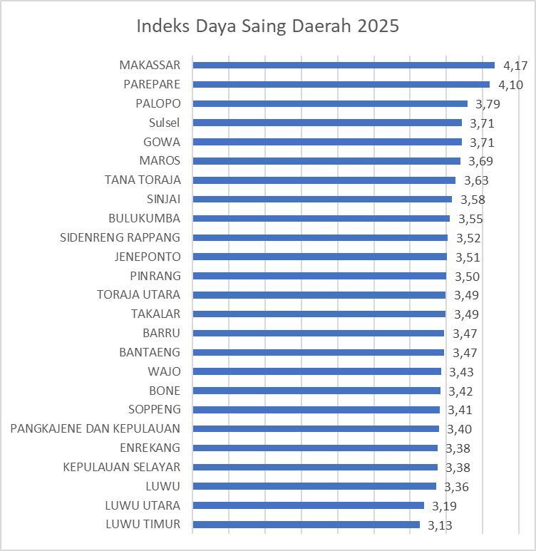 Hasil ini menunjukkan posisi Makassar sebagai daerah dengan performa daya saing yang kuat di tingkat nasional.