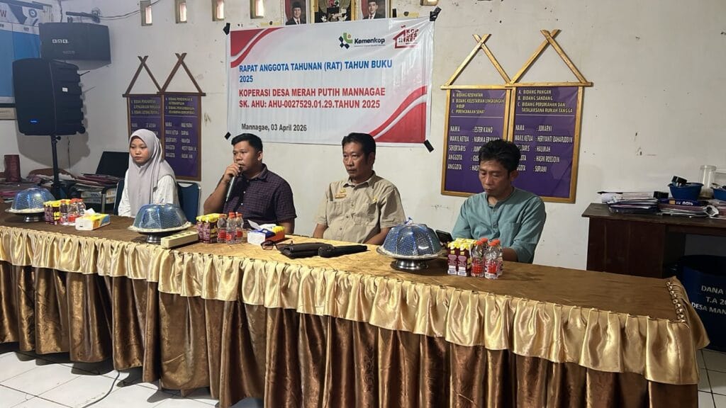 WAJO – CELOTEH.ONLINE – Dinas Perindagkop dan UMKM melalui Kepala Bidang Koperasi melaksanakan pengukuhan pengurus KDKMP di Kantor Desa Mannagae, Kecamatan Tanasitolo, Kabupaten Wajo, Kamis (9/4/2026) pukul 14.30 WITA.