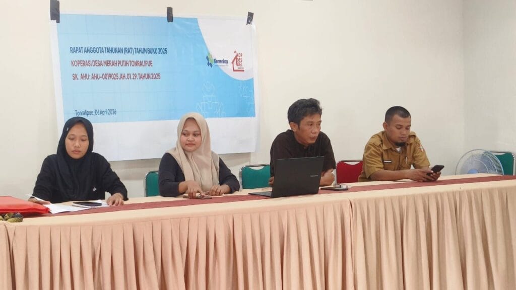 Wajo – CELOTEH.ONLINE– Koperasi Desa Kelurahan Merah Putih (KDKMP) Tonralipue kec tanasitolo, kab Wajo melaksanakan Rapat Anggota Tahunan (RAT) Tahun Buku 2025 di Kantor Desa Watalipue, Senin (6/4/2026). Kegiatan tersebut dihadiri oleh anggota, pengurus, dan dewan pengawas serta berlangsung tertib.