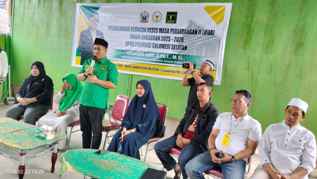 SOPPENG – CELOTEH.ONLINE – Wakil Ketua DPRD Sulawesi Selatan, Sufriadi Arif, S.Pd., M.Si., menggelar dialog bersama masyarakat di Kelurahan Lalabata, Kecamatan Lalabata Rilau, Kabupaten Soppeng, dalam rangka Reses Masa Persidangan II Tahun Anggaran 2025–2026.