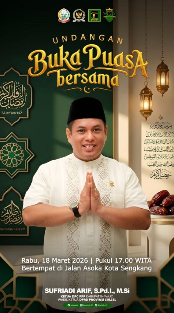 WAJO – CELOTEH.ONLINE – Ribuan warga menghadiri kegiatan buka puasa bersama yang digelar Wakil Ketua DPRD Provinsi Sulawesi Selatan, Supriadi Arif, di kediamannya di Jalan Asoka, Kelurahan Bulupabbulu, Kecamatan Tempe, Kabupaten Wajo, Rabu (18/3/2026).