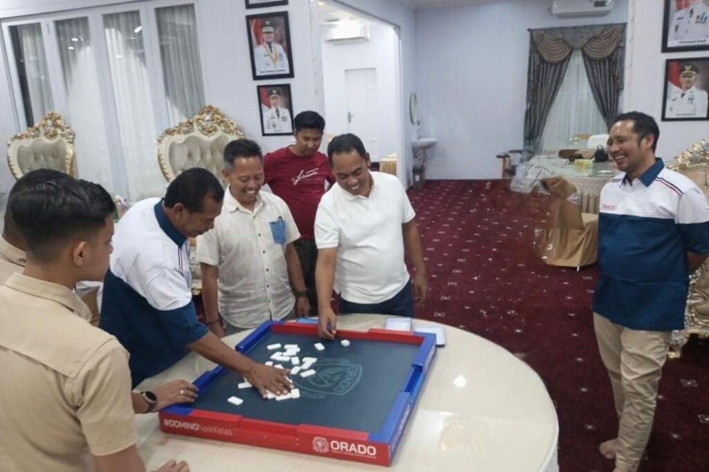 Silaturahmi berlangsung Dalam suasana santai namun penuh keakraban, pengurus bersama Bupati juga sempat bermain langsung di papan arena domino yang akan digunakan dalam kejuaraan.