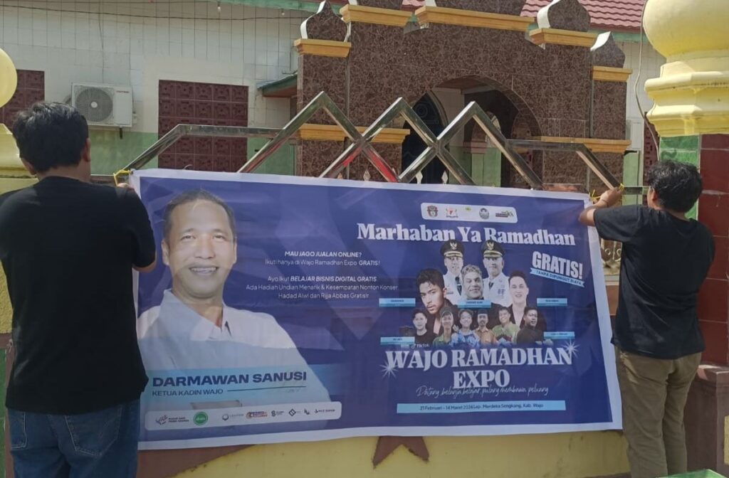 WAJO – CELOTEH.ONLINE –Persiapan Wajo Ramadhan Expo (Ware) terus dimatangkan menjelang hari pelaksanaan. Memasuki H-6, panitia telah memasang spanduk publikasi di sejumlah masjid yang tersebar di 14 kecamatan di Kabupaten Wajo.